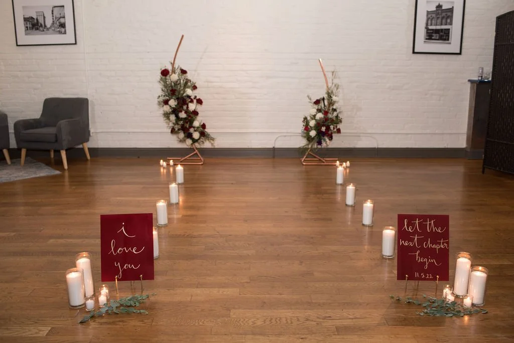 Wanting the comfort of an indoor location, our team began connecting with our venue partners. The best fit for this proposal was at The Upstairs, located at Gravy (you guessed it, upstairs, above their main dining area) in downtown Raleigh. It is a gorgeous white brick space with different seating options, a bar, and it also overlooks their outdoor space Jiddi. This is a wonderful venue perfect for an intimate event (such as a proposal!), and with a superb team!